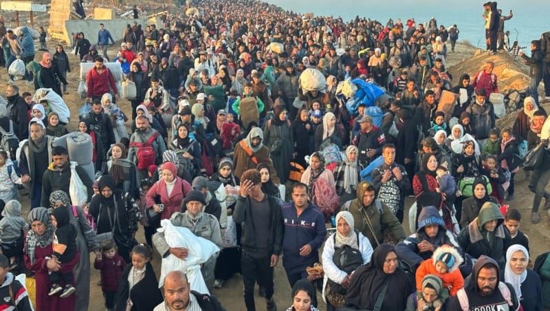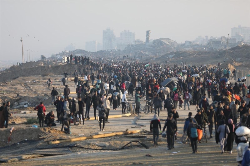 İsrail'in Gazze Şeridinin kuzeyi ve güneyini ayıran Netzarim Koridoru'ndan Filistinlilerin geçişine yerel saatle 07.00'de (TSİ 08.00) izin vereceğinin açıklanmasının ardından binlerce Filistinli, yanlarına alabildiği eşyalarla Reşid Caddesi'nden kuzeye doğru yürümeye başladı.
