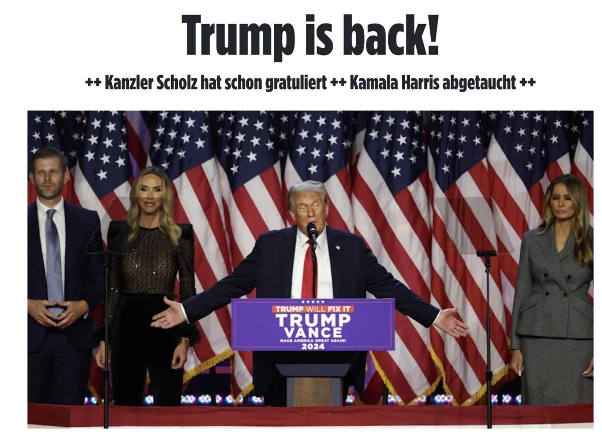Trump'ın ilan ettiği zaferin ardından Kamala Harris'in sessizliğini ve konuşma yapmayacağının bildirilmesi üzerine BILD, "Trump'ın rakibi Kamala Harris saklanmaya başladı. Müzik kapalı, parti bitti." ifadelerine yer verdi.