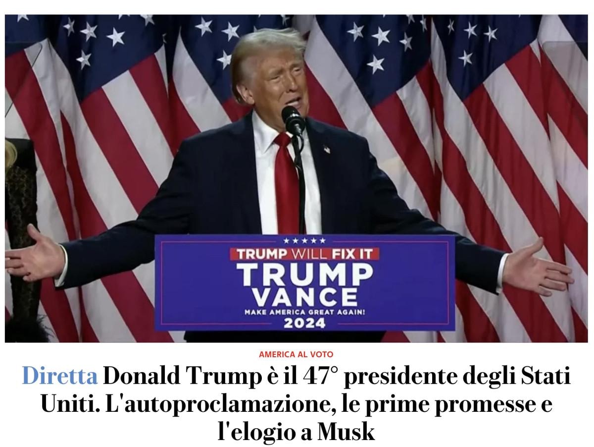 İtalya'nın en çok okuyucusu bulunan gazetelerinden biri olan La Repubblica, Trump'ın zaferini şu cümlelerle manşetlerine taşıdı: