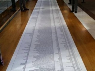 Akdeniz'de hayatını kaybeden mültecilerin isimlerinin yazıldığı pankart, Avrupa Parlamentosu'nun zeminine serildi.