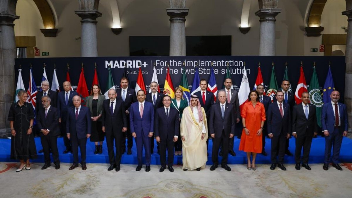Avrupa ve Arap ülkelerinin de dahil olduğu 20 ülkeden üst düzey yetkili, İsrail'e baskı gündemiyle İspanya'nın başkenti Madrid'de bir araya geldi.