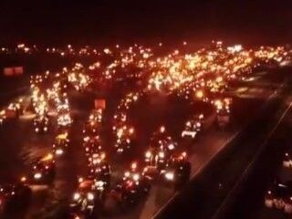 Binlerce traktörün başkent merkezine girmesi nedeniyle trafik de felç oldu.