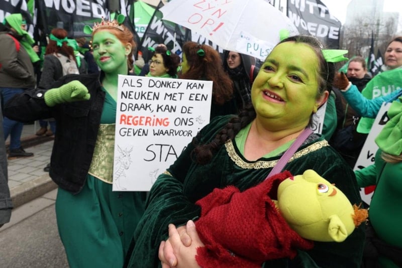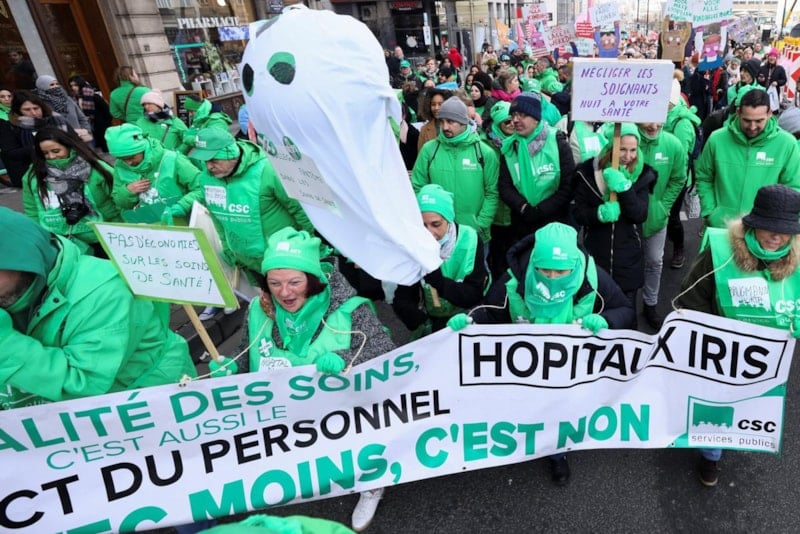 Belçika'nın başkenti Brüksel'de sağlık çalışanları, çalışma şartlarının iyileştirilmesi için gösteri düzenledi.