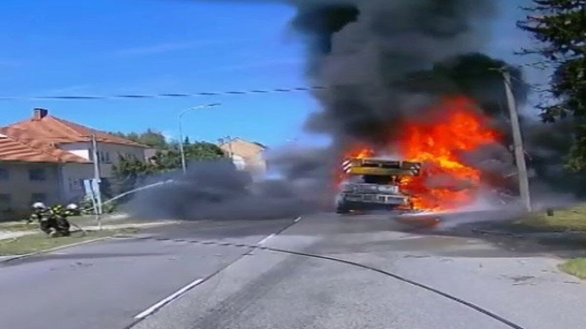 Çekya’nın Kozlany kentinde dün itfaiye ekipleri yanan bir kamyona müdahale ettiği sırada ölümden döndü. Ekiplerin müdahalesi sırasında meydana gelen patlamada kamyonun tekerleği itfaiyecilerin üzerine fırladı.