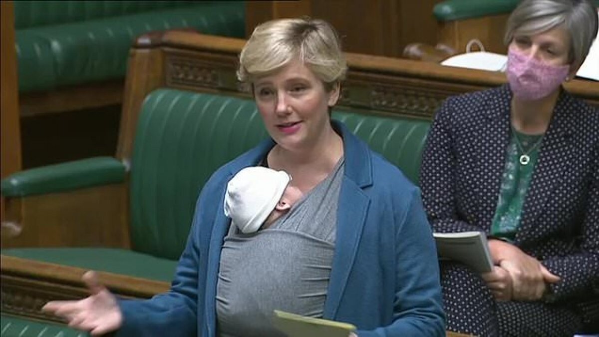 İngiliz milletveki Stella Creasy, yeni annelerin Parlamento'ya dönerken desteklenmek yerine azarlanmasına tepki olarak Avam Kamarası'na koynundaki bebeğiyle hitap etti.
