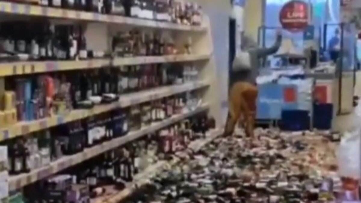Kadın müşterinin bir başka müşteri tarafından bacağında alkol şişesini kırdığı sırada "sakinleş" diye uyarmasının ardından daha da sinirlenerek rafta bulunan 500 alkol şişesini kırdığı ifade edildi.