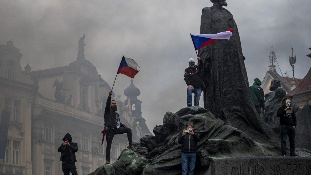Kendilerini "Sivil Memnuniyetsizlik Hareketi" olarak adlandıran bir grup, Çekya hükümetinin koronavirüs salgını ile mücadele kapsamında getirdiği kısıtlamaları protesto etti.