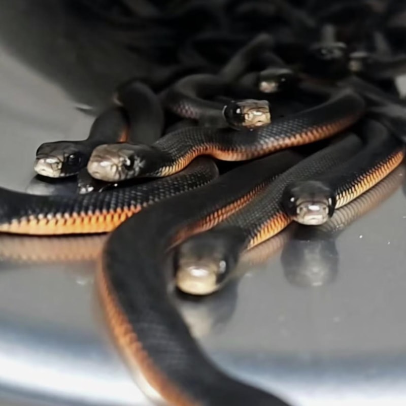 Yılan avcısı Cory Kereawro, iş arkadaşı Dylan'ın bir evin arka bahçesinde 40 "kırmızı karınlı siyah yılan" bulduğunu, yakalanan yılanlardan hamile olanların yavrulaması sonucunda da yılan sayısının 102'ye çıktığını belirtti.