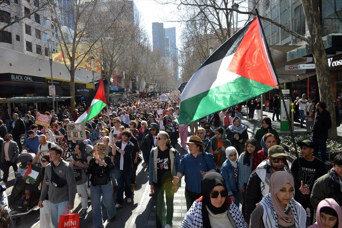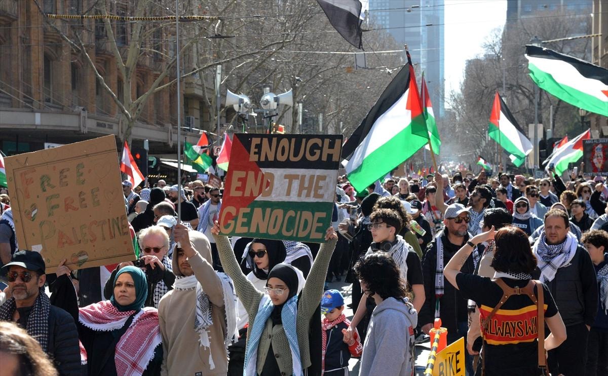 ABC News'ün haberine göre, Filistin'e destek için düzenlenen ve ülke tarihindeki en büyük kitlesel eylemlerden biri olarak değerlendirilen gösterilere katılanlar, Avustralya'nın İsrail ile silah ticaretini durdurmasını ve buna ek olarak ekonomik yaptırımlar uygulanmasını talep etti.