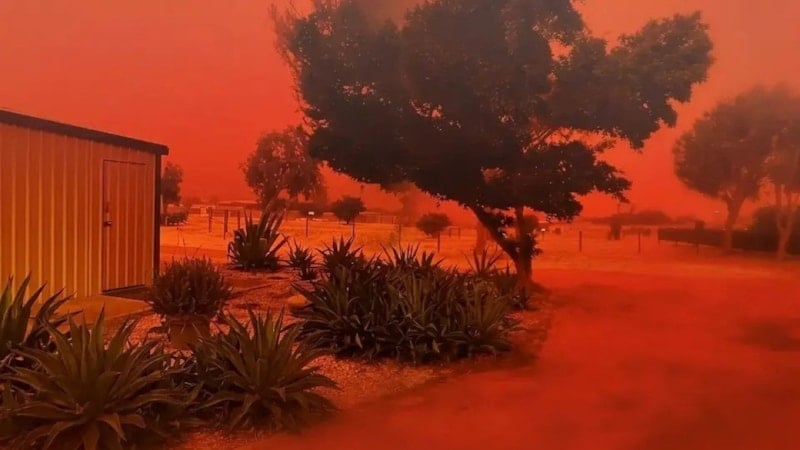 Sosyal medyada görenlerin "kıyamet alameti" sandığı gökyüzündeki kırmızılık, Avustralya'da etkili olan siklon sebebiyle meydana geldi.