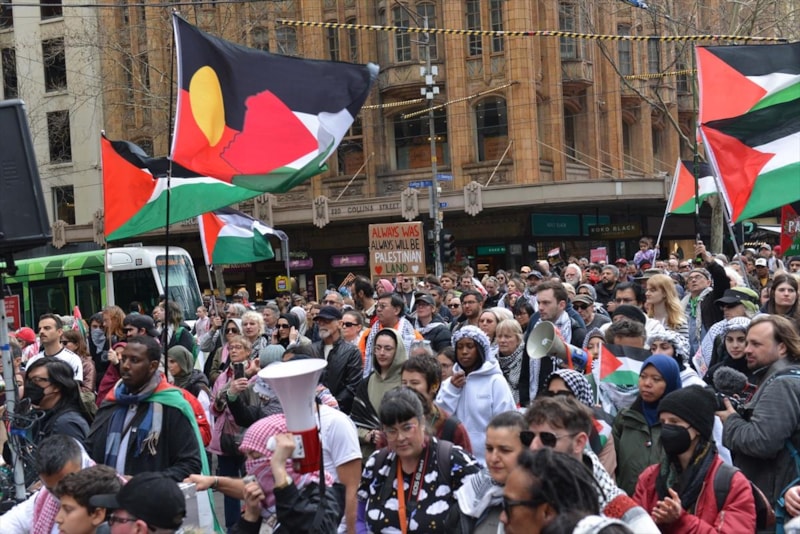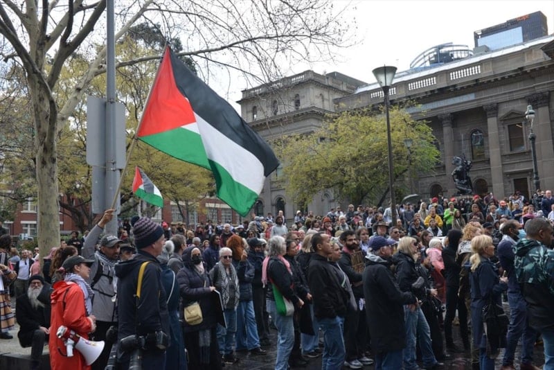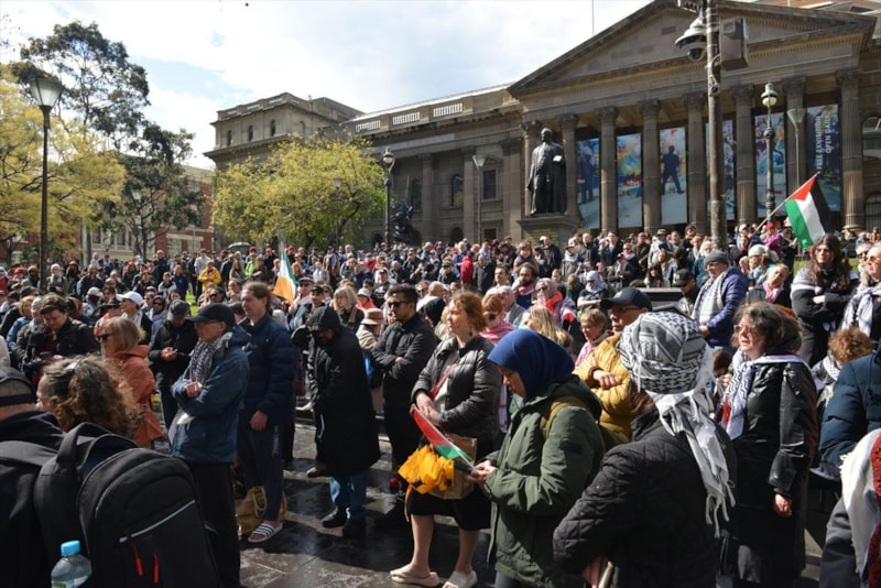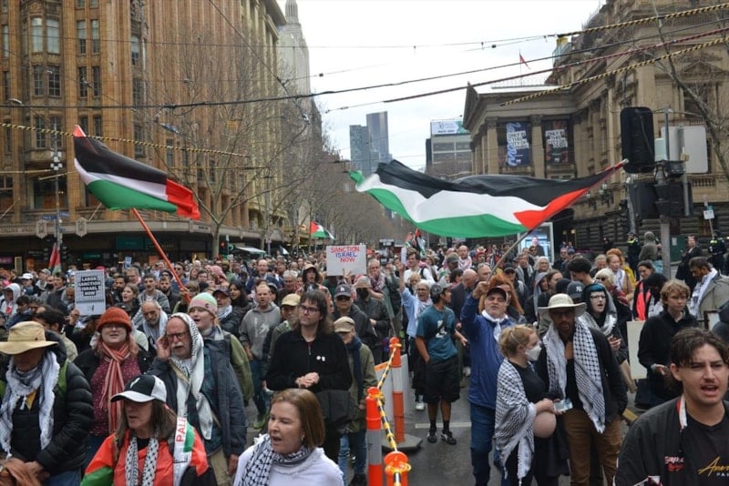Melbourne'da, İsrail'in Gazze'ye saldırılarının başlamasından bu yana her pazar, kent merkezinde benzer protestolar düzenleniyor.