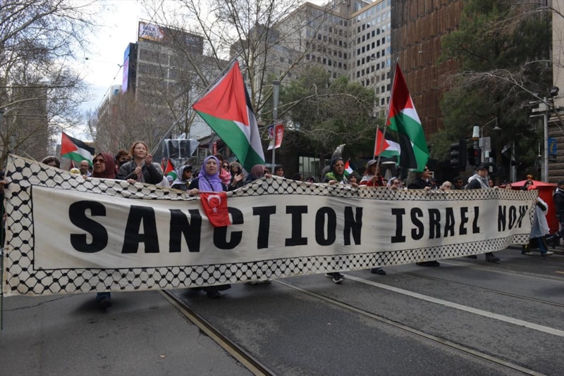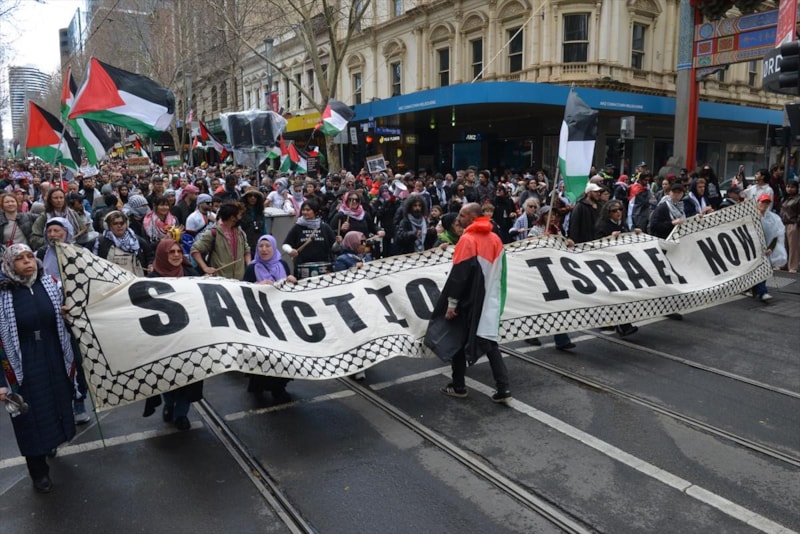 Göstericiler, uluslararası toplumun İsrail'e karşı daha sert yaptırımlar uygulamasını talep ederken, Avustralya hükümetine de bu konuda inisiyatif alma çağrısında bulunuyor.