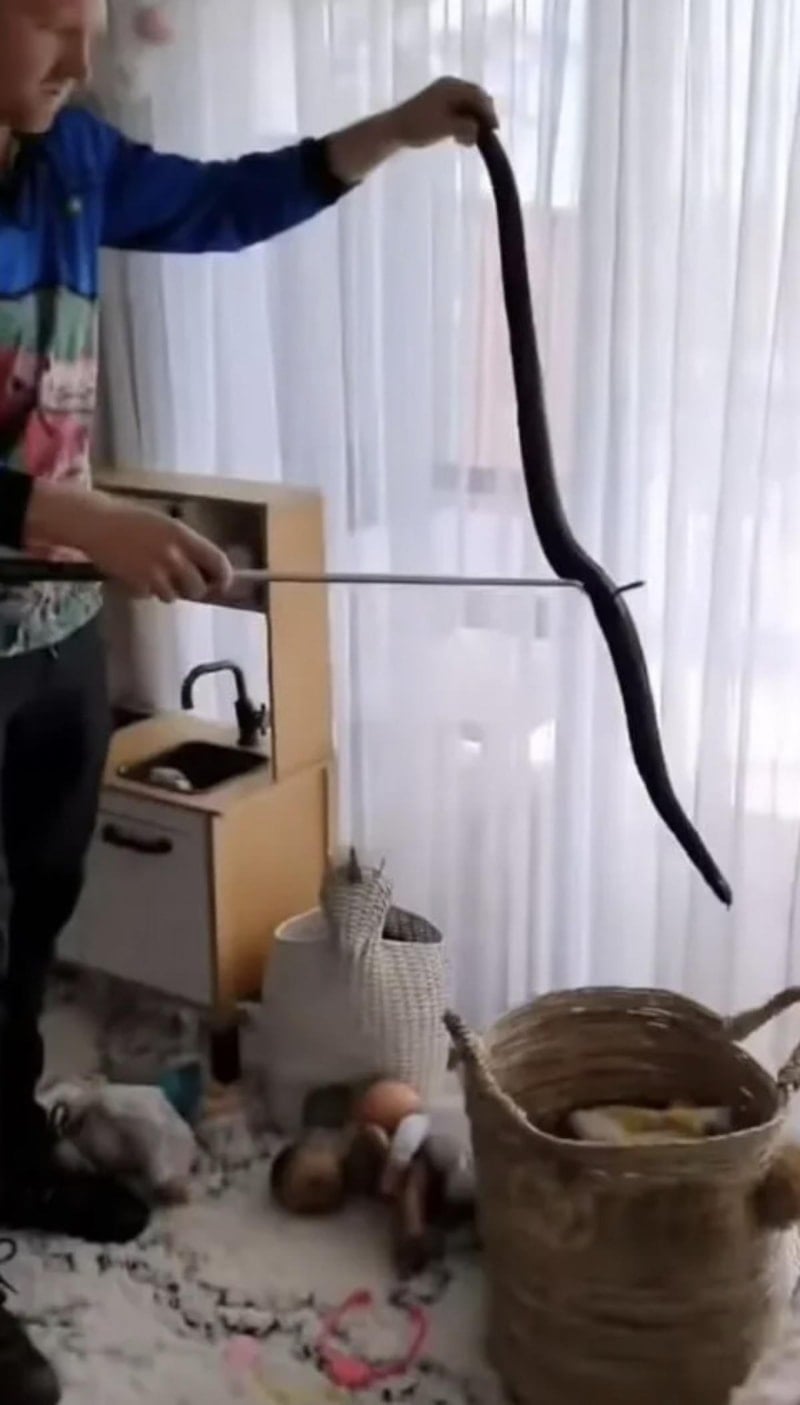 Bir anne, kızının oyuncak kutusunda zehirli bir yılan yakaladı.