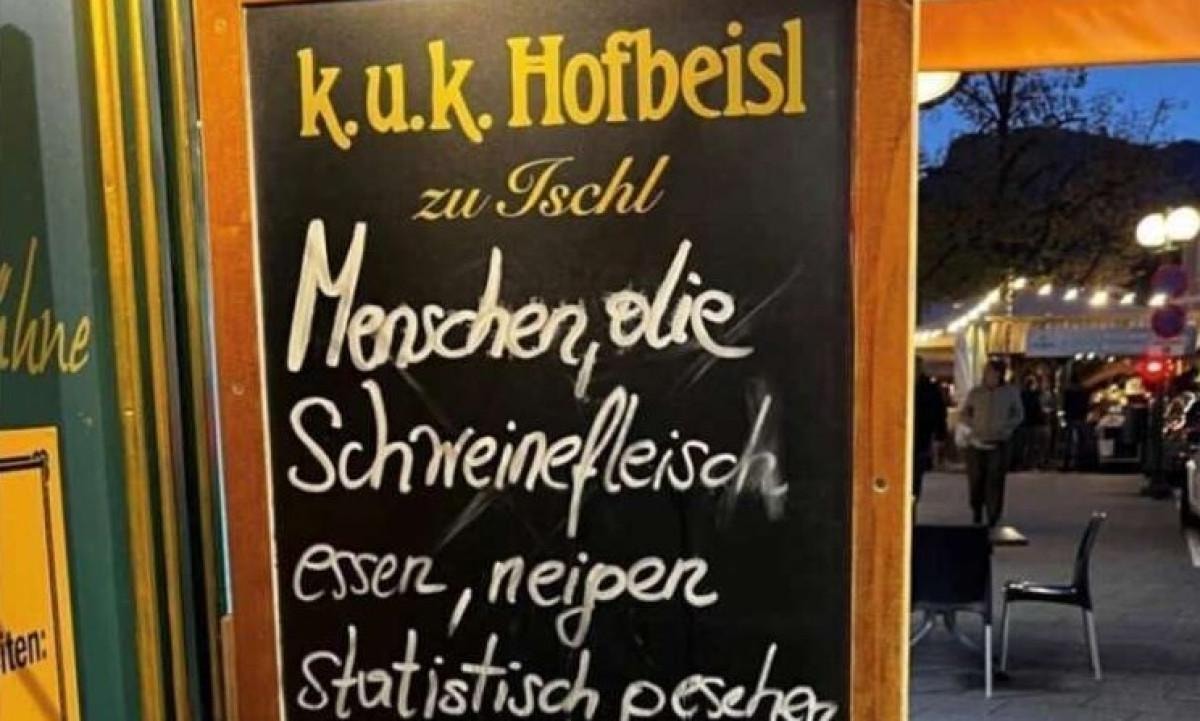Bir restoranın girişindeki "İstatistiklere göre, domuz eti yiyen insanların kendileri ve diğer insanları havaya uçurma (intihar saldırısı) eğilimi daha az oluyor." ifadelerinin yazılı olduğu tabela, müşterilerin tepkisine yol açtı.