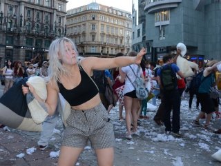 Tarihi Stefanplatz Meydanı'ndaki etkinliğe yastıkları ile katılanlar, önce iki gruba ayrıldı. Ardından yastıklar ile birbirine vuran katılımcılar, ilginç görüntülerin ortaya çıkmasına neden oldu.