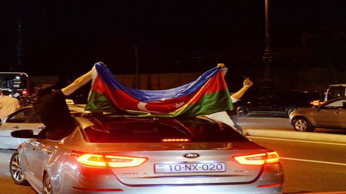 Akşam saatlerinde Bakü kentinin dört bir yanında toplanan kalabalık, farklı yönlerden şehir merkezine yürüdü.Daha çok gençlerden oluşan kalabalık, Bakü'nün ünlü Azadlık Meydanı'na toplanarak "Ya Karabağ, ya ölüm", "Şehitler ölmez, vatan bölünmez", "Başkomutan, silah ver bize" sloganları attı.Ellerinde Azerbaycan bayrağı taşıyan binlerce kişi şehir sokaklarında tur atarak protestolarını sürdürdü.