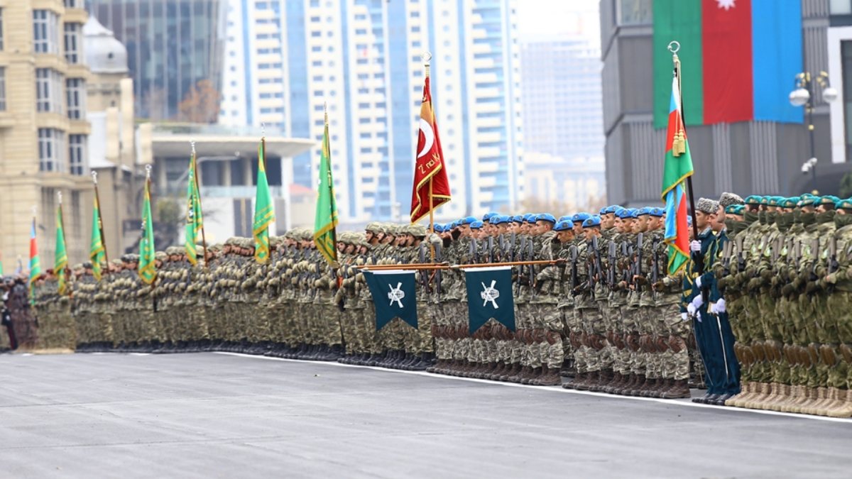 Azerbaycan Silahlı Kuvvetleri'nin katılımıyla gerçekleştirilecek tören için provalar yapılıyor.