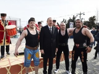 Tarihi kıyafetler giyen askerler tarafından selamlanan Aliyev'e yöresel giysili gençler Nevruz'a has tatlar ikram etti. Aliyev, geleneksel müzik ve dans gösterilerinin ardından Nevruz ateşini yaktı.