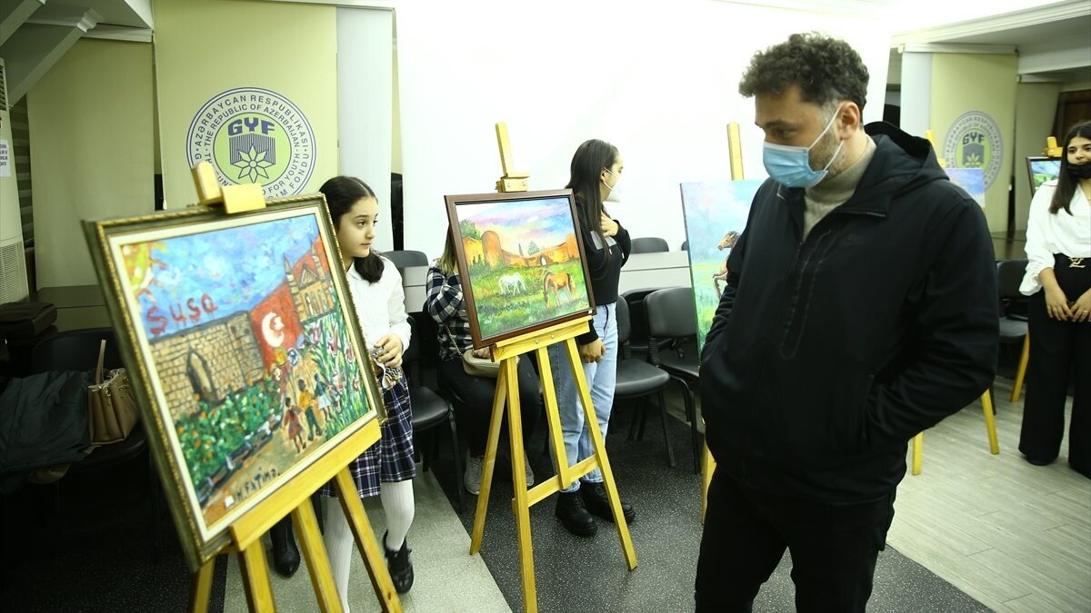 Azerbaycan'ın başkenti Bakü'de ortaokul öğrencileri, Karabağ Zaferi'yle ilgili resimler hazırladı.