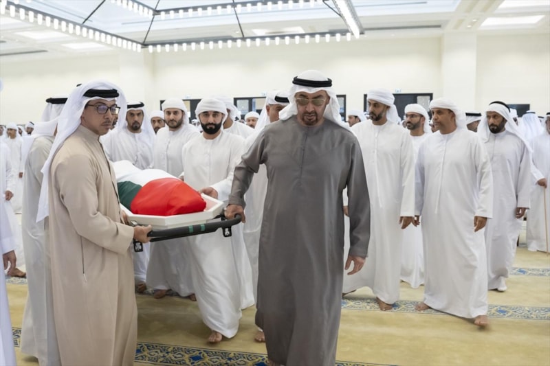 Birleşik Arap Emirlikleri'nde (BAE) hayatını kaybeden Abu Dabi Devlet Başkanı Temsilcisi Şeyh Said bin Zayid Al Nahyan, Abu Dabi'deki Şeyh Sultan bin Zayed Camisinde kılınan cenaze namazının ardından son yolculuğuna uğurlandı.