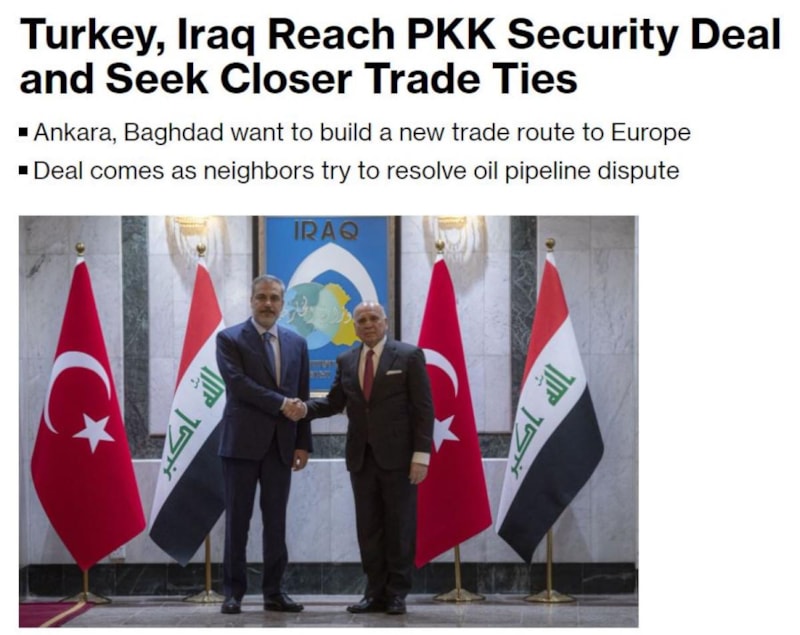 ABD merkezli Bloomberg, Türkiye ve Irak'ın PKK'ya karşı güvenlik anlaşması üzerinde mutabakata vardığını aktardı.