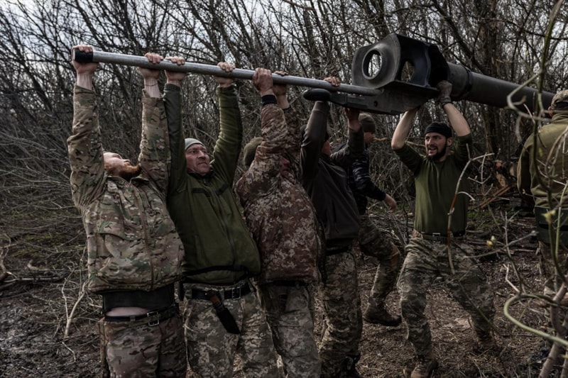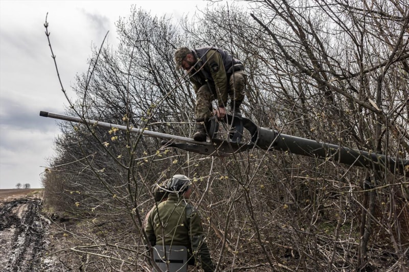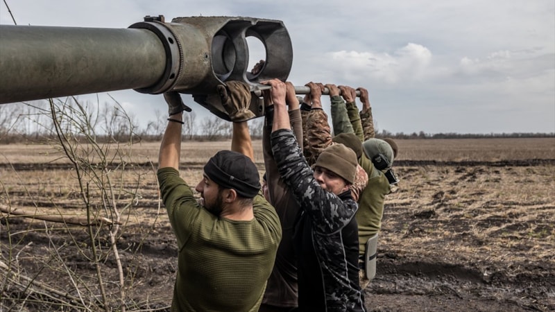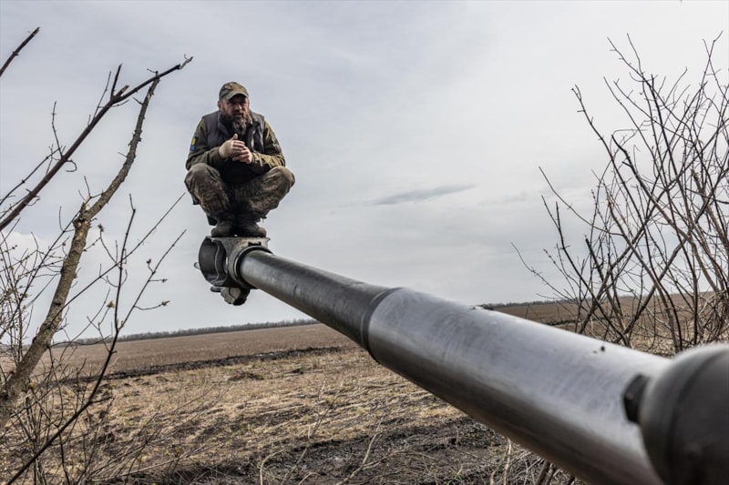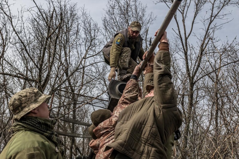 Donetsk Oblastı'ndaki topçu askerler, Bahmut çevresindeki mevzilerinden Rus birliklerine karşı atışlar gerçekleştiriyor.
