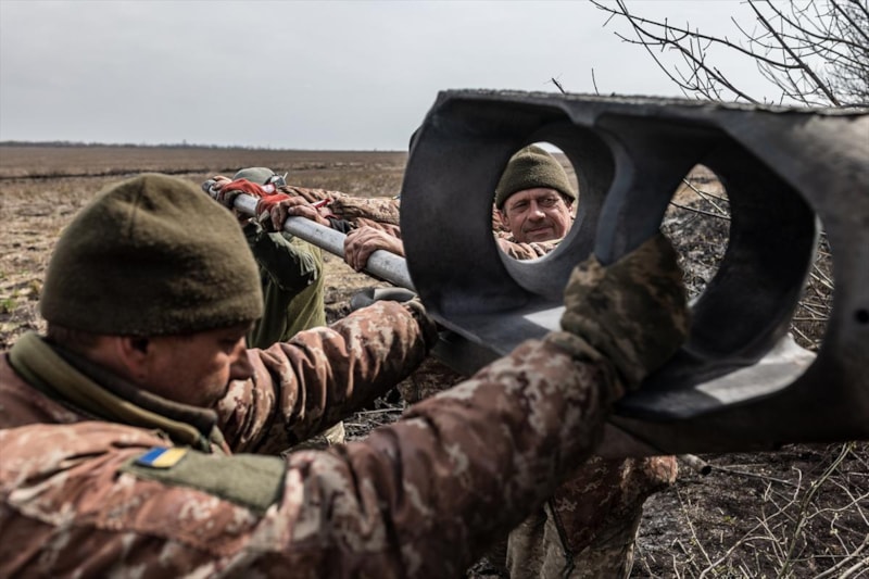 Güvenlik açısından "kırmızı alan" olarak ilan edilen Bahmut şehrinin çevresindeki cephe hattında topçu atışları yoğun şekilde sürüyor.
