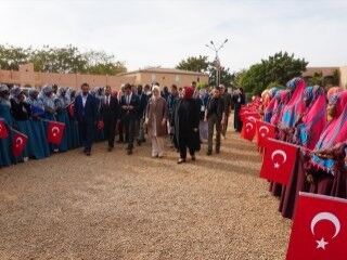 Okulun Türk ve Burkina Fasolu çalışanlarıyla sohbet eden Selçuk ve Albayrak, ziyaret ettikleri sınıfta öğrencilere hediyeler verdi.