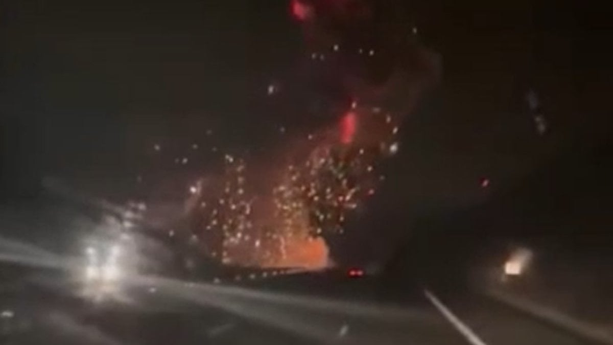 Görüntülerde, otoyolda ilerleyen araçtaki vatandaşların gökyüzündeki patlamayı fark ederek büyük şaşkınlık yaşadığı görülüyor.