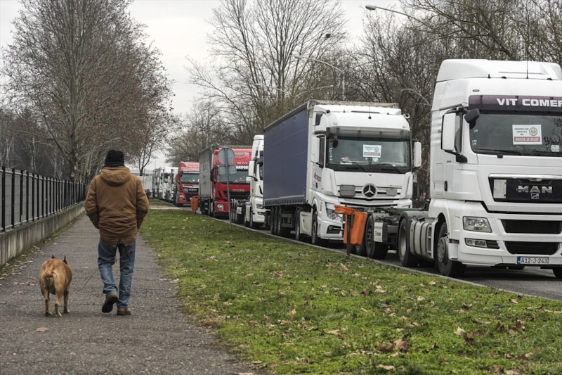 Balkan ülkelerinde taşımacılık yapan yüzlerce kamyon ve tır şoförü, Avrupa Birliği’nin Şengen Bölgesi için uygulamaya koyduğu yeni geçiş kurallarına karşı sınır kapılarında eylem başlattı.