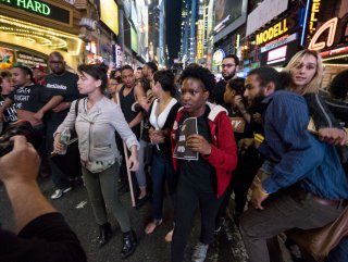 New York'ta Union Meydanı'nda toplananların eylemi, polisin yoğun güvenlik önlemi altında başladı. Polis şiddetini hedef alan gösteride, "Freddie Gray için adalet", "Her yer Ferguson, her yer Baltimore" sloganları atıldı, "Siyah hayatlar da önemlidir" pankartları açıldı.