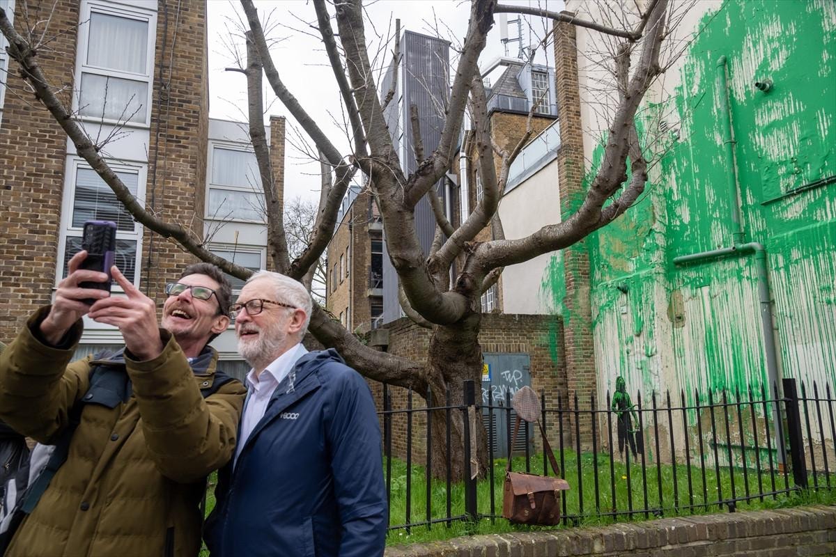 Eski İşçi Partisi üyesi siyasetçi Jeremy Corbyn, eserin önünde fotoğraf çekti.