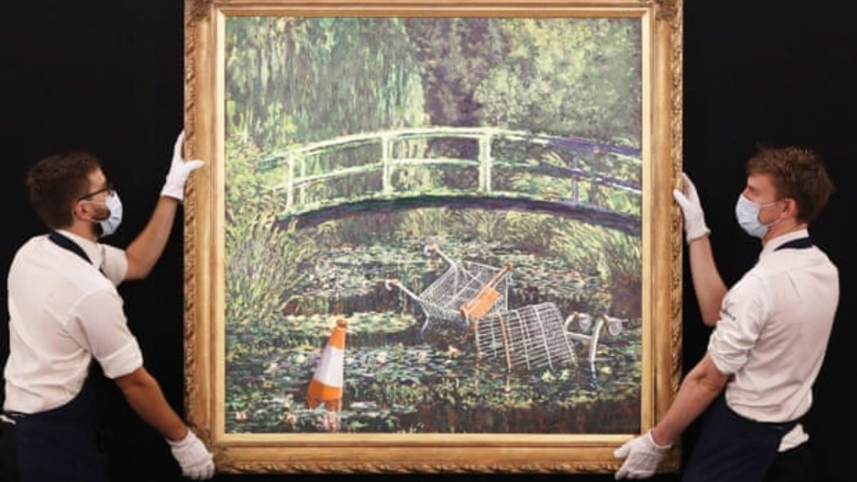 İngiltere'nin başkenti Londra'daki Sotheby’s müzayede evinde Banksy'nin Fransız ressam Claude Monet’nin eserini yorumladığı çalışması satışa sunuldu.