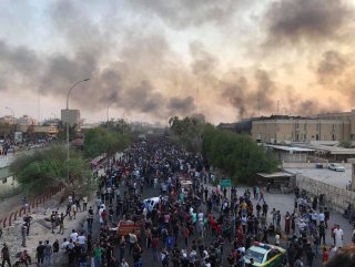 Konsolosluğa giren öfkeli grup, binayı ateşe verdi. Basra’daki gösteriler sırasında daha önce devlet televizyonu ile Şii parti ve milis güçlere ait binalar da ateşe verilmişti.