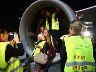 Bir süre önce iflasını açıklayan Almanya'nın ikinci en büyük havayolu şirketi Air Berlin'in, son uçuşunu gerçekleştiren Airbus 320 uçağı büyük bir coşkuyla karşılandı.