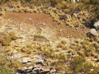 Avustralya'nın batısında yerleşimden uzak bir bölgeye taşlarla yazılmış olan SOS mesajı polisi alarma geçirdi.