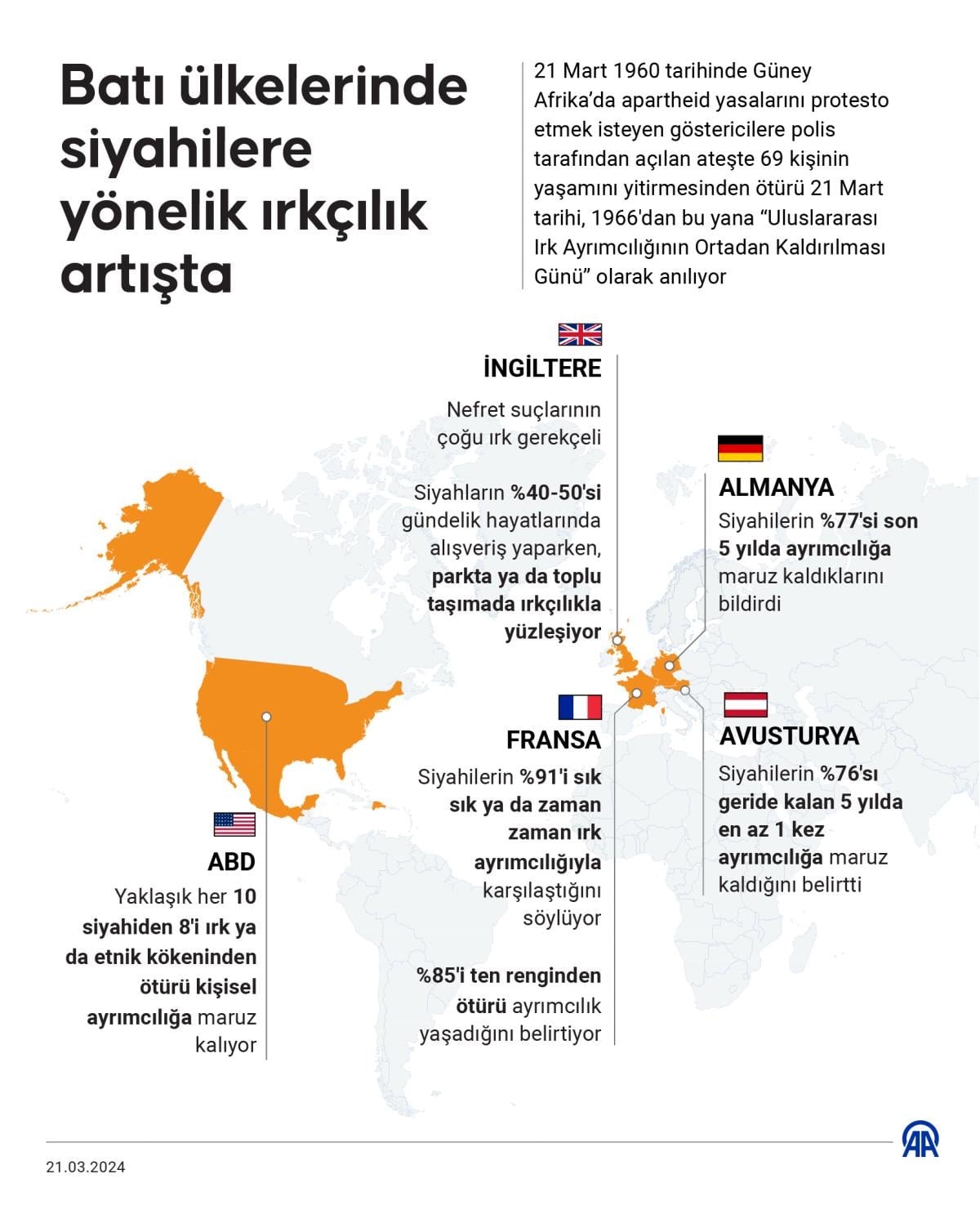 ABD, İngiltere ve Avrupa Birliği ülkelerinde, kurumsal ve bireysel ırkçılığın artışı, ayrımcılığın önlenmesine yönelik çabalara rağmen dikkat çekiyor.