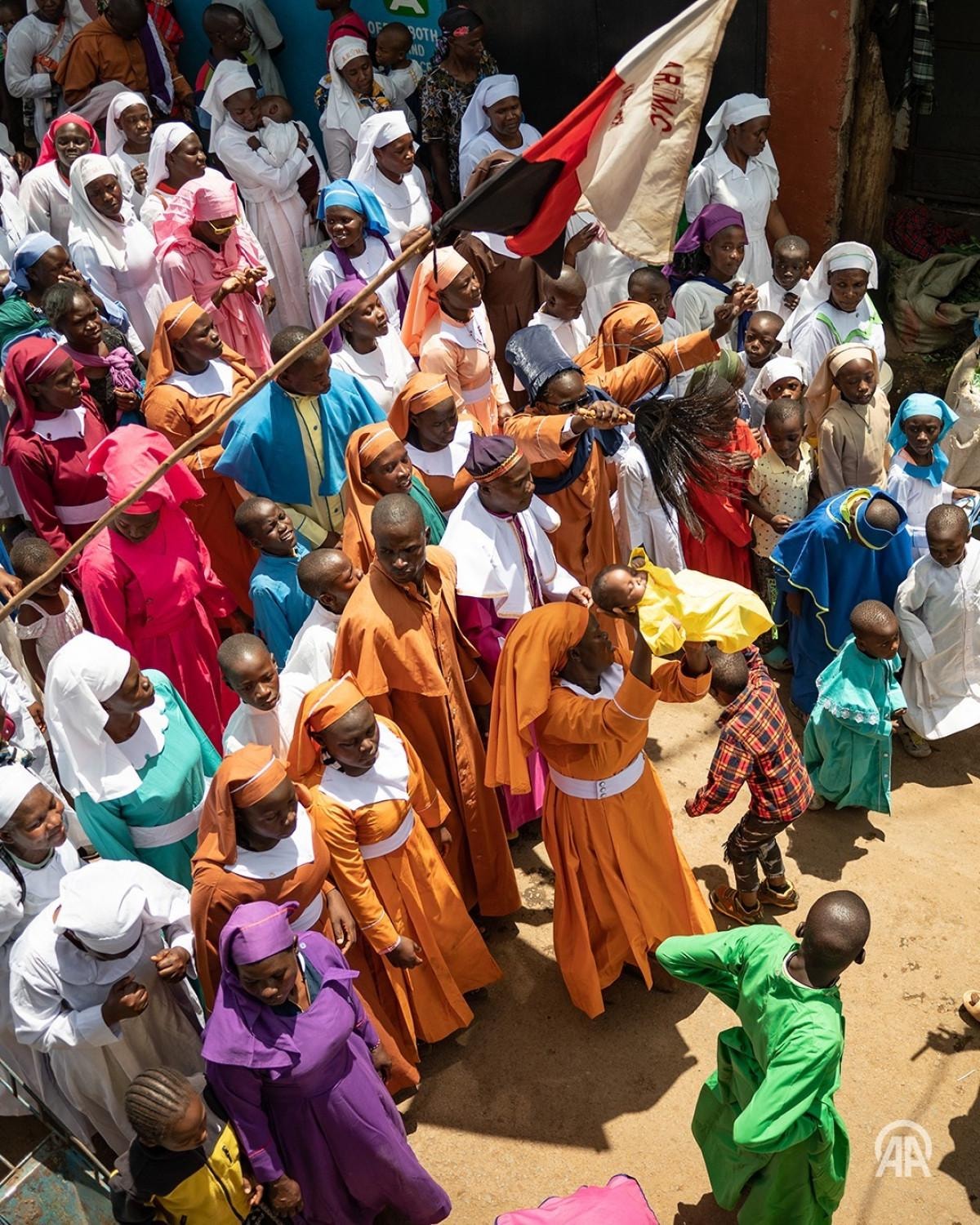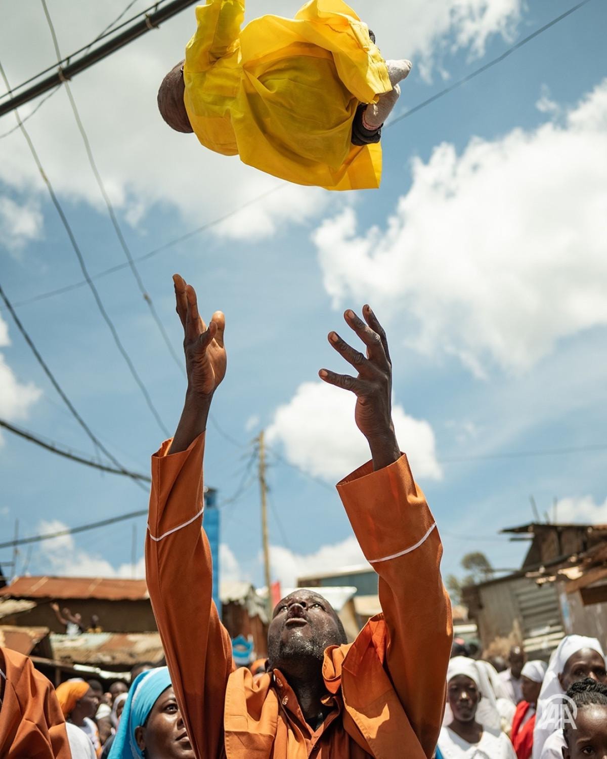 - Kenya’nın Kibera bölgesinde Africa Roho Msalaba Kilisesi, bebekleri havaya kaldırma ritüeliyle tanıtıyor.