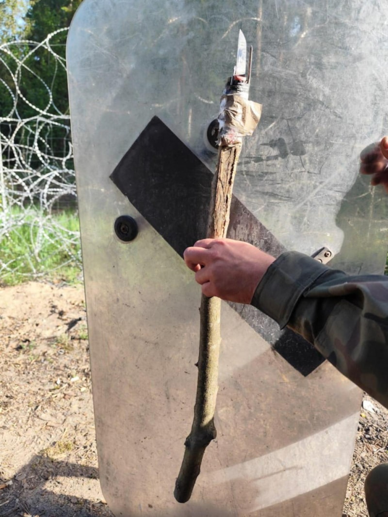 Başka bir noktada da Polonya Sınır Muhafızları saldırıya uğradı. Askerlerden birinin kafasına şişeyle vuruldu. Diğer asker ise sopaya bantlanmış bıçakla yaralandı.