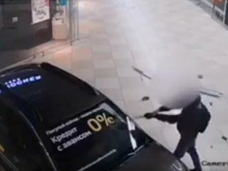 Bir marketteki tüm reyonlara baltayla da saldıran genç, AVM’de çekiliş için bulunan araca da büyük hasar verdi.