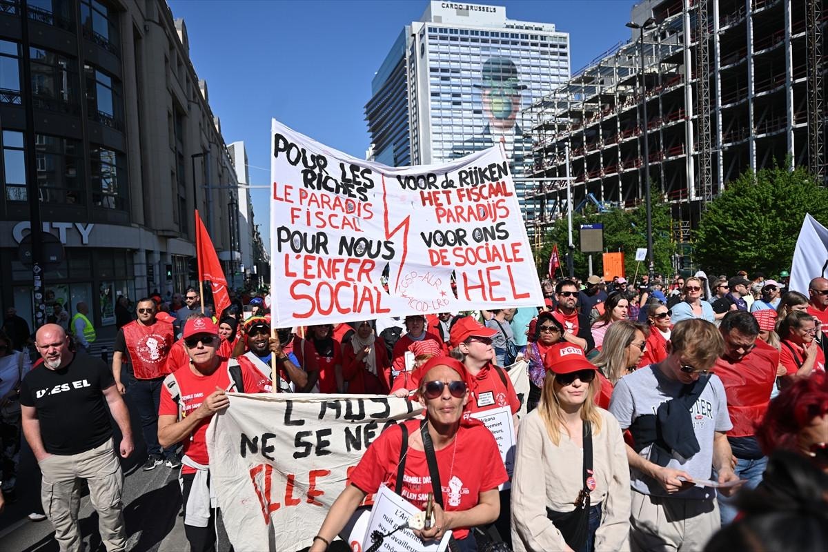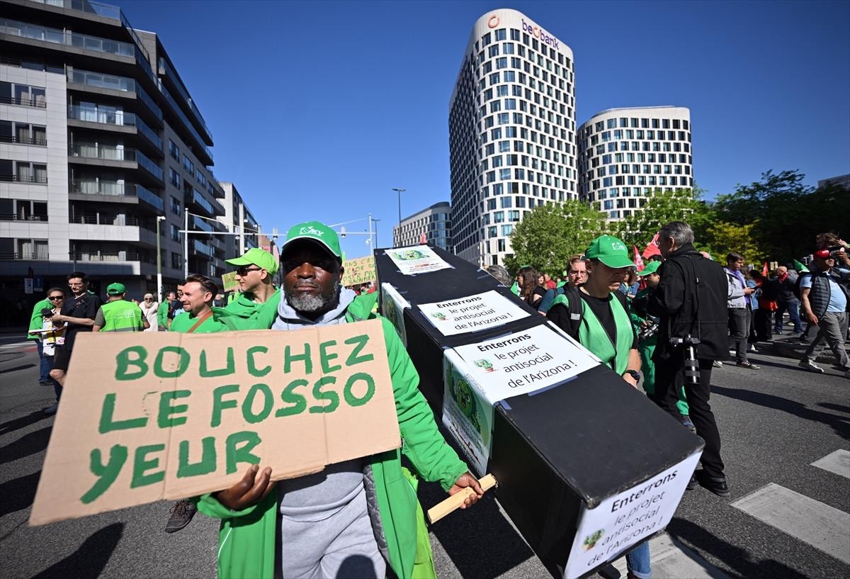 Brüksel'de hükümeti protesto etmek için binlerce kişi Kuzey Tren İstasyonu önünde bir araya geldi. Sloganlar atan göstericiler, birkaç kilometre mesafedeki Mont des Arts Meydanı’na kadar yürüdü.