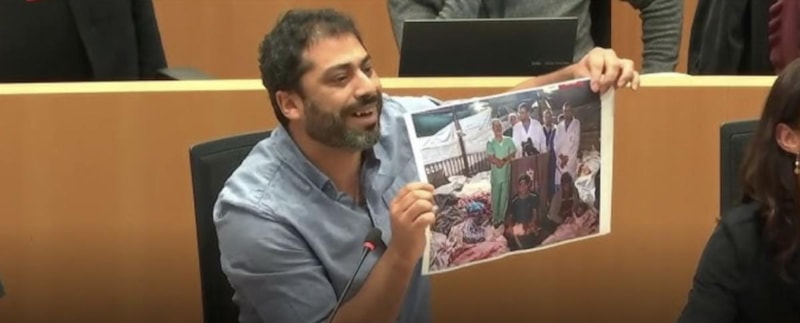 Bu da sivil kurbanların olduğu bir hastanenin fotoğrafı. Hastane! Bu olayın mağdurları sivillerdi. Bu birkaç ayda ordunuz öldürdüğü çocuk sayısı, son 1 yılda dünya çapında öldürülen çocuk sayısına eşit. Bu olayı meşrulaştırmak için mi buraya geldiniz?