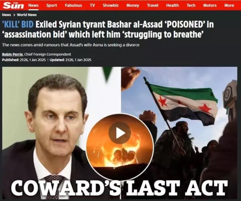 The Sun gazetesinin Rus yetkililere dayandırdığı iddiaya göre, Suriye'nin devrik başkanı Beşşar Esad, kaçtığı Moskova'da suikasta uğradı.