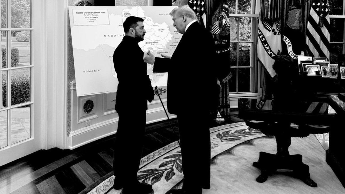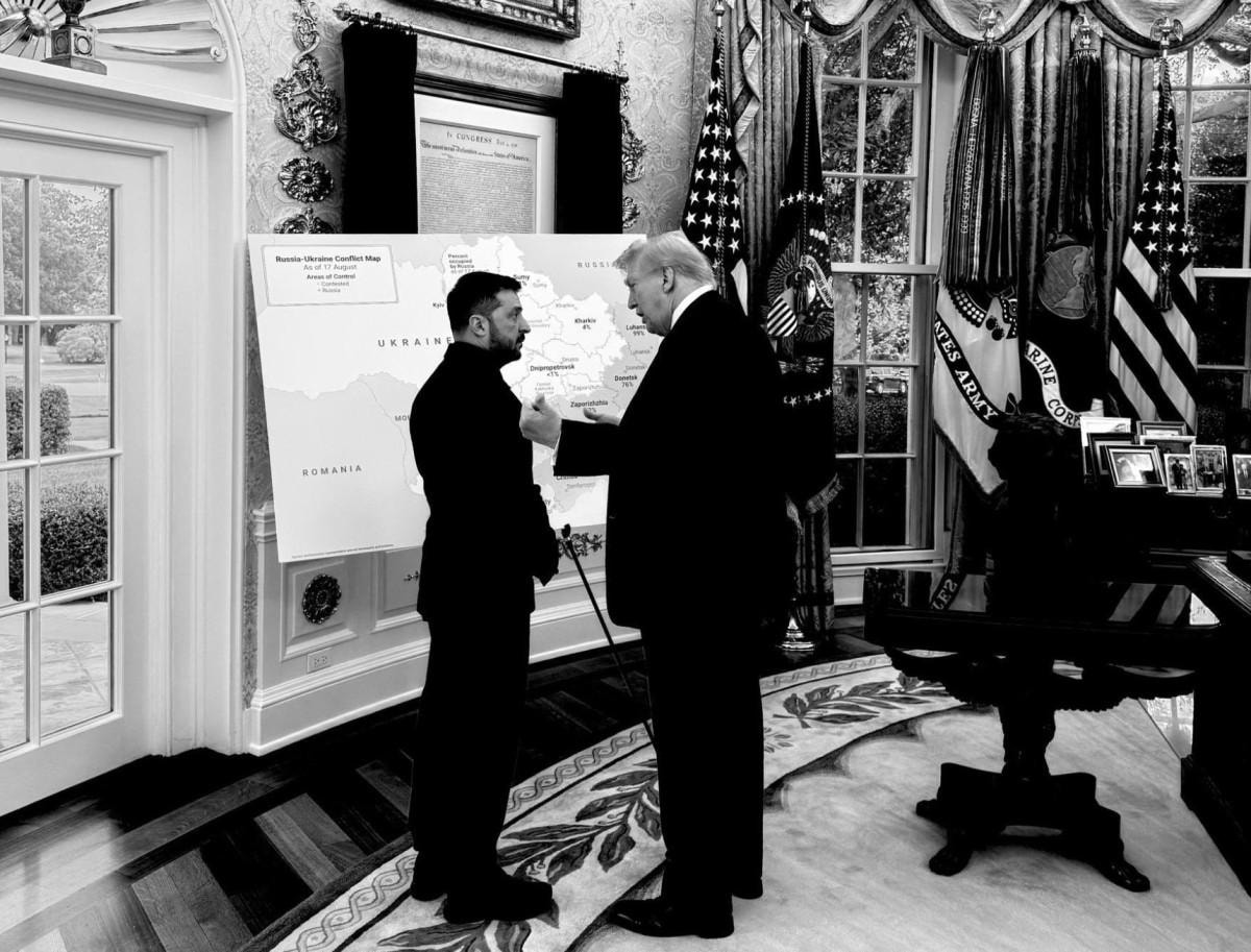 Fotoğraf karesinde Ukrayna'nın işgal edilmiş toprakları ve Trump'ın Zelensky'e harita üzerinden bir takım şeyler anlattığı görüldü.