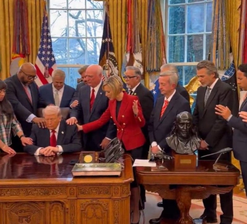 Odaklı Spot: ABD Başkanı Donald Trump, ülkenin dört bir yanından gelen dini liderleri Oval Ofis’te misafir etti. Trump’ın masası etrafında toplanan grup dua ederek dikkat çeken görüntülere imza attı.
