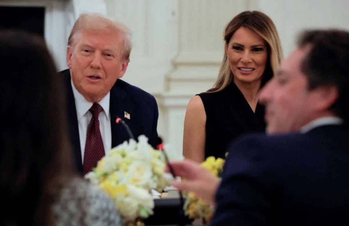 Trump'ın geçen hafta yenilettiği Beyaz Saray Gül Bahçesi’nde verilen yemeğe, First Lady Melania Trump da katıldı.