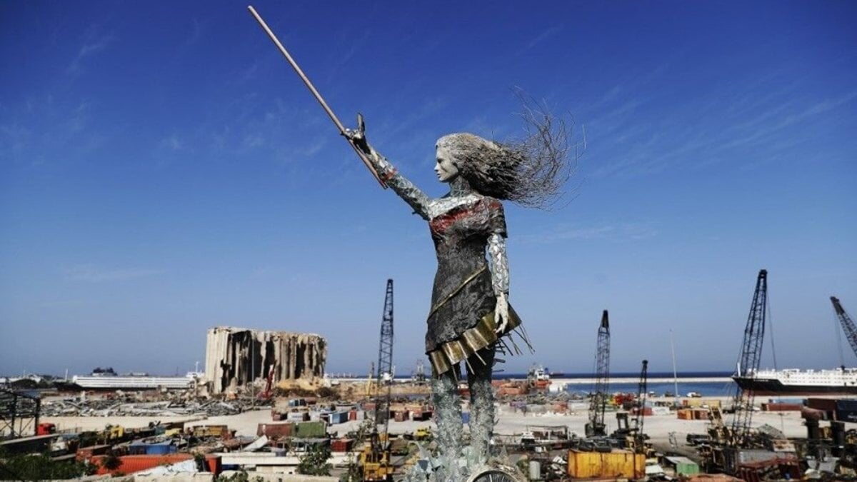 Lübnanlı sanatçı Hayat Nazer, Beyrut Limanı’nda ağustos ayında meydana gelen ve 180’i aşkın kişinin hayatını kaybettiği patlama alanının karşısına bir kadın heykeli yerleştirdi.