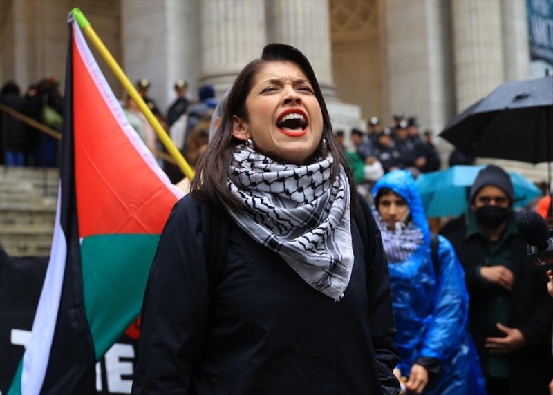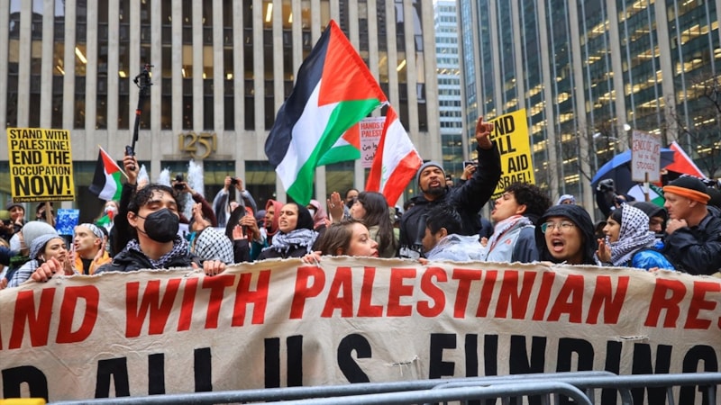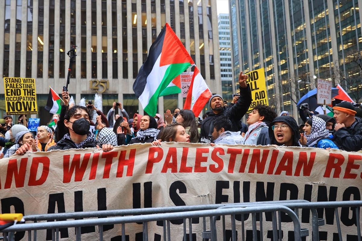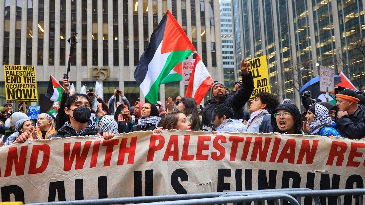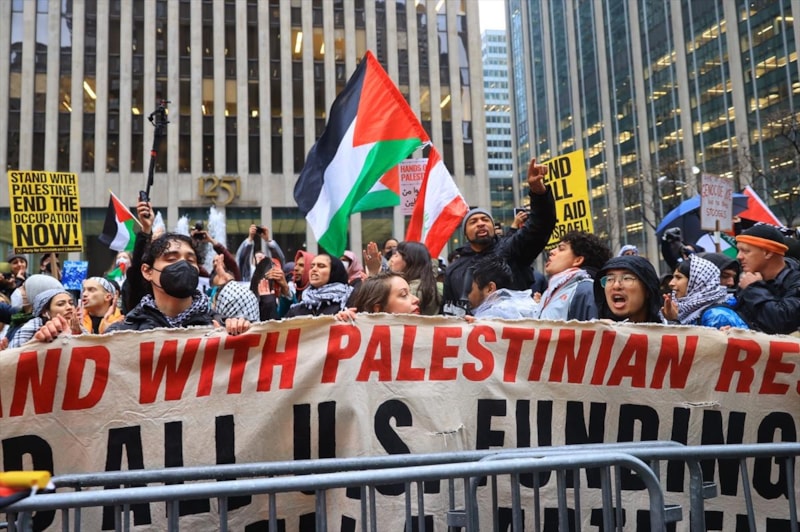 New York’taki ünlü gösteri merkezi Radio City Music Hall binası önünde toplanan yüzlerce sivil aktivist, Biden’ın Gazze’deki sivilleri öldüren İsrail’e verdiği destekten dolayı gösteri düzenledi.