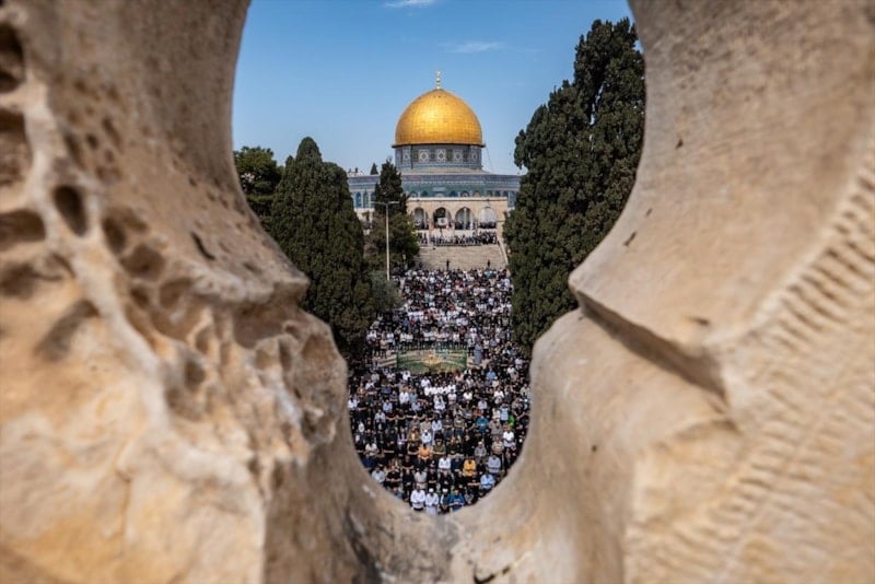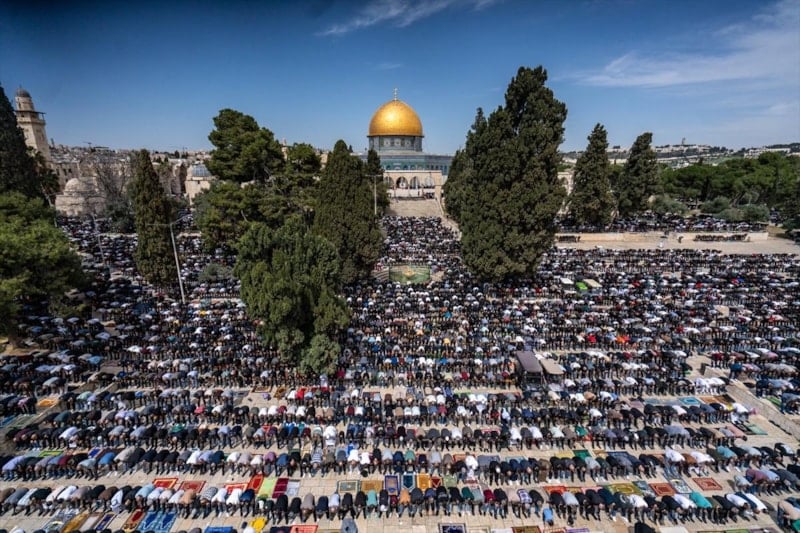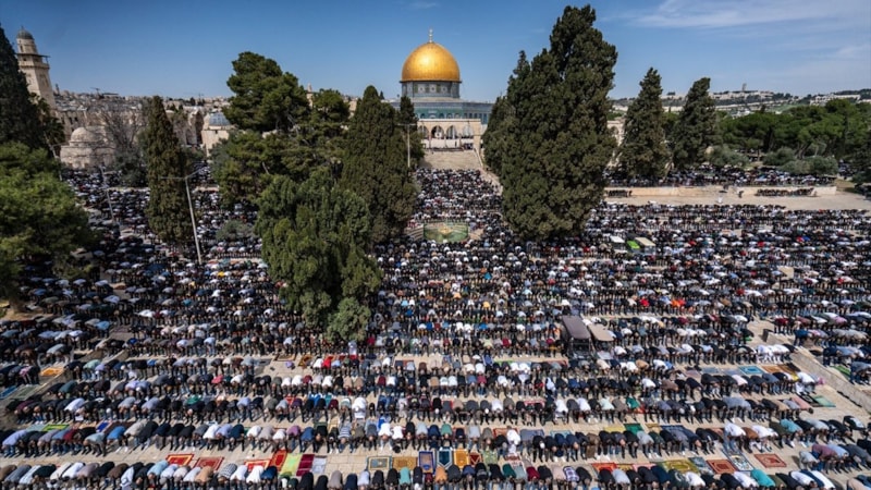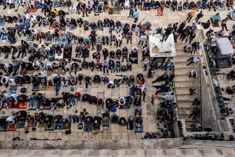 Ramazan ayının ikinci cuma namazı için Mescid-i Aksa'ya yaklaşık 80 bin kişi akın etti. Filistinliler, İsrail'in kısıtlamalarına rağmen namazlarını kılmak üzere yoğun bir şekilde toplandı.