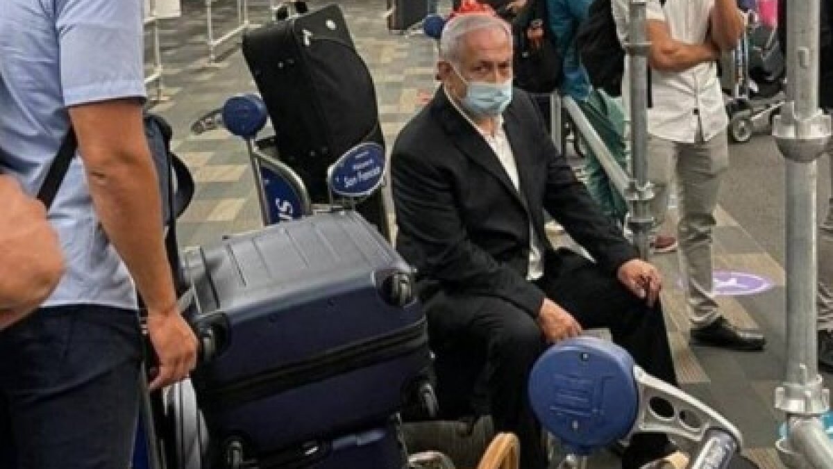 Çekilen görüntülerde Netanyahu'nun ayakta beklemekten yorulup, bavulunun üzerine oturması da dikkat çekti.
